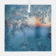Vue tôt le matin d'une fenêtre couverte de gel.