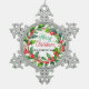 Cet ornement délicat présente une décoration simple mais élégante de flocon de neige, encadrée dans une charmante couronne. Parfait pour ajouter une touche d'émerveillement hivernal à votre sapin de Noël.