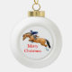 La conception originale de beaux-arts d'un cheval et d'un cavalier de pullover de chasseur par l'artiste équin Carolyn McFann du studio de ronronnement de deux chats a imprimé sur une qualité et un ornement personnalisable de Noël pour les supporters équestres et tous qui aiment des chevaux.