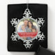 Décoration de vacances de famille avec le texte personnalisable et un endroit pour ajouter votre propre photo de famille spéciale en rouge et blanc élégants. Le cadeau personnalisé parfait cette saison des vacances ou un souvenir prisé de famille.