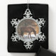 Cet ornement de vacances en étain présente un charmant cheval doré brun qui cherche des pommes tombées sous la neige, sur fond de collines nues. Ça aura l'air beau accroché à votre sapin de Noël !