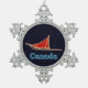 Un chien traîne sur un arrière - plan étoilé. Le texte "Canada" apparaît en bleu brillant.