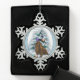 Merveilleux art de Noël avec un adorable Field Spaniel assis devant un arbre boisé dans la forêt. Belles cartes de Noël, ornements, vêtements et cadeaux de Noël espagnols au trésor.