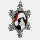 Le chat noir et blanc de smoking utilise un casquette de Père Noël avec un arbre de Noël dans l'ornement mignon de flocon de neige de vacances d'amoureux de les chats d'arrière - plan