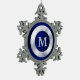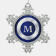 Ornement Flocon De Neige Noël du Monogramme d'argent bleu