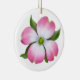 La peinture originale de beaux-arts d'une fleur rose de cornouiller par l'artiste Carolyn McFann du studio de ronronnement de deux chats a imprimé sur une qualité et un ornement en céramique personnalisable de vacances.