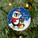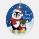 Ornement avec deux pingouins mignons de bande dessinée dans un paysage neigeux d'hiver avec des flocons de neige. Le texte (des deux côtés) "Joyeux Noël" peut être customisé. Si vous n'aimez aucune suppression des textes juste il.