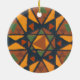 Un ornement rond avec un motif islamique traditionnel en noir, or, marron et vert, tiré d'une sérigraphie de Judy Adamson.
