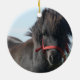 Conception noire hirsute de photo de poney pour des amants de poney.