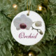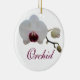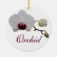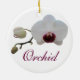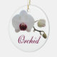 Cette fleur magnifique est une orchidée de Phalaenopsis avec une "lèvre" rouge. Les orchidées sont vraiment des plantes fascinants ; l'une des saveurs et parfums préférés au monde vient d'une orchidée : la vanille. Le haricot vanille est en fait un gousse de graines d'orchidées et les raclements de l'intérieur du haricot, souvent utilisés dans les glaces et par les chefs, sont en fait des millions et des millions de graines d'orchidées. Il y a aussi beaucoup d'histoires, de mythes et de légendes concernant les orchidées. Le nom "orchidée" vient du mot grec "orchidée" qui signifie (de toutes choses) "testicule". La légende d'Orchis, qui était le fils d'une nymphe et d'un satyre, s'est mal terminée (comme ils semblent toujours le faire). Sa mort fut particulièrement horrible, car il fut déchiré. Son père supplia les dieux de lui rendre son fils ; ils refusèrent. Cependant, on lui offrit une certaine consolation, les restes devenant des orchidées. Cette fleur époustouflante est proposée ici sur ce magnifique ornement. Le design est mis en miroir à l'envers de l'ornement. Vous êtes invité à remplacer la conception et/ou le texte en miroir par votre propre message ou sentiment.