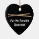 Cet ornement musical fait sur commande fait un grand cadeau de Noël pour votre batteur préféré. Il indique, "pour mon batteur préféré" dans un blanc, police d'amusement. Le dos a la pièce pour votre message customisé, ou supprimez les mots d'échantillon et laissez-les vides.