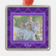 Un cadre pourpre accentué par un arrière - plan avec un motif noir subtil de damassé est la pièce maîtresse de cet ornement élégant de photo de souvenir. Téléchargez votre propre photo et customisez l'année. Cette conception élégante fait un grand cadeau pour n'importe quelle occasion !