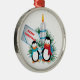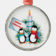 Ornement Rond Argenté Pingouins Et Bougies De Noël