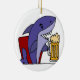 Le requin drôle boit une tasse de bière tout en se reposant dans une chaise rouge dans cette conception originale d'art d'amusement frais.
