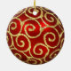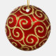Ornement de céramique ronde avec l'image, de part et d'autre, d'un beau ornement de Noël rouge avec des tourbillons d'or glacé. Voir la collection complète de décorations de Noël sous la catégorie MAISON dans la section VACANCES.