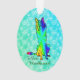 Ornement Silken Windhound coloré avec fond de flocon de neige vert et bleu.