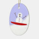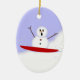 Cet ornement de Snowman en duvet a un bonhomme de neige qui est effrayé par son aventure en traîneau en descente.