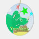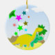 Ornement vert de nom de dinosaure de bande dessinée de Triceratops. Un petit dinosaure vert mignon de Triceratops de bande dessinée et un Diplodocus jaune adorable dans un paysage préhistorique avec des arbres, des montagnes et des vulcanos avec la couleur tient le premier rôle l'ornement avec personnalisable votre nom. Cet article de cadeau de dinos est entièrement personnalisable, ajoute vos textes et images ! Un grand ornement de dinosaures de bande dessinée pour la grande petite fan de Dino !