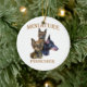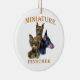 Trois Pinschers miniatures ont posé sur un ornement en céramique de Noël pour les vacances de Noël.
