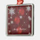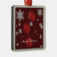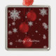 Décorez votre sapin de Noël en cette période de fêtes avec un ornement de Noël rouge. Le design ornemental comprend un trio d'ornements de Noël suspendus avec des flocons de neige en chute et un arrière - plan rouge foncé. Autres cadeaux et objets de vacances disponibles avec ce design aussi.