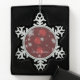 Décorez votre sapin de Noël en cette période de fêtes avec un ornement de Noël rouge. Le design ornemental comprend un trio d'ornements de Noël suspendus avec des flocons de neige en chute et un arrière - plan rouge foncé. Autres cadeaux et objets de vacances disponibles avec ce design aussi.