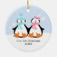 Des ornements de Noël personnalisables avec un adorable couple de pingouins. ©Sanqunetti Design