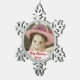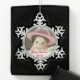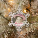 Concevez vos propres ornements faits sur commande de flocon de neige d'étain de photo en téléchargeant votre propre photo et en ajoutant votre propre texte, tel que le Joyeux Noël et l'année. Ceux-ci font de grands cadeaux personnalisés de Noël.
