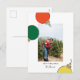 Un design moderne de carte de vacances avec 3 ornements de style rétro en rouge, vert et jaune entourant une photo personnalisée au-dessus d'un accueil et signature saisonniers personnalisés. Design par Shelby Allison et photo de Joseph Gonzalez sur Unsplash