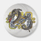 Ein blauer und goldener keltischer Knüpfarbeit-Ornament mit einem bunten östlichen Drachen, der sich um ihn herum zieht. Ein einzigartiges Design für Drachenliebhaber und ein perfektes Geschenk für Fantasy-Fans. Ideal für Weihnachten oder Geburtstage, für Ihre Freunde, Ihren Ehemann oder Ihre Ehefrau oder für jeden, der Drachenkunst Liebe hat.