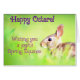 Un lapin de ressort est décrit sur cette carte de voeux d'équinoxe d'Ostara/ressort