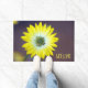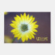 Diese individuelle Türmatte für die Zuhause oder den Büroeingang zeigt ein nah-up-Bild einer gelben Osteopermumblüte, einer Art Afrikanischer Dämon. "Willkommen" wird in großen, leicht lesbaren Schriften hinzugefügt. Die Matte misst 24" x 36" und hat eine glatte Filzfront und einen rutschfesten Latex Rücken. Es hat auch eine verstärkte Kante, um dem Ausgraben zu widerstehen, ist verblassen und mild resistent, und reinigt leicht mit einem Spray von Wasser. Ideal für überdachte Einstiegsanlagen wie z.B. Veranda, Appartements, Büroräume, Wohnungen, usw. Wenn Sie Fragen zu dieser Matte haben oder mir helfen möchten, dieses Design auf einen anderen Artikel zu übertragen, können Sie mich über Zazzle kontaktieren. Ich helfe Ihnen gerne, das Design korrekt zu gestalten.
