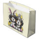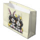 Niedliche Darstellung der Berner Berghunde, die zu Ostern verkleidet sind. Ideal für Liebhaber von Haustieren oder Hundeeltern zu Ostern.