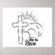 Osterbibel Verse Poster mit Kreuz und leeres Grab und Bibel Vers Reflektive Typografie. "Er ist nicht hier; er ist aufgestanden, wie er sagte."