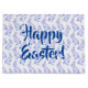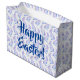 Blauer und lila Geschenksack wünscht ein glückliches Ostern.