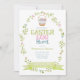 Ostereier Jagd Einladung mit Pastellfarben und hübschen blumenreichen ovalen Kranz und Ostereier Korb.