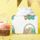 Papier mit meinem Design von bunten bemalten Ostereiern in hübschen Körben mit Text, der "Happy Oaster" sagt.