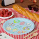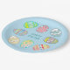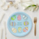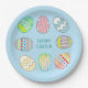 Ostereier in Farbe auf hellblauen Tellern. Text für Ostern, Ferien, Geburtstag und mehr personalisiert.
