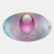 Pastellblau, Lavendel und rosa Design mit einem durchsichtigen rosa Ei in einem silberfarbenen filigranen Rahmen, umgeben von einem leicht silberfarbenen ovalen Rahmen-Set mit vier glatten Edelsteinen wie farbenfrohen Eiern.