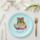 Niedlich Osterschale in einem Nest pastellfarbener Ostereier und Blume gegen hellblau