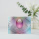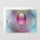 Pastellblau, Lavendel und rosa Design mit einem durchsichtigen rosa Ei in einem silberfarbenen filigranen Rahmen, umgeben von einem leicht silberfarbenen ovalen Rahmen-Set mit vier glatten Edelsteinen wie farbenfrohen Eiern.