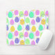 Dieses Mauspad hat ein Osterdesign von Eiern in lila, gelb, grün, blau und rosa, verstreut mit ihren Konturen.