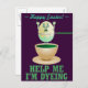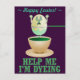 Dieses lustige Osterdesign zeigt ein Ostereier, das in eine grüne Unterlage mit einem erschreckenden Blick auf das Gesicht und die Arme in der Luft getaucht wird. Der Text sagt: "Hilf mir! Ich färbe." Dies ist ein humorvoller Cartoon für alle, die gerne Ostereier und Lieben albernen Gewehre malen. Auf dieser Postkarte steht auch "Happy Oaster". oben, aber Sie können diesen Teil anpassen, um zu sagen, was Sie gewollt.