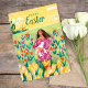 Frühlingslandschaft, gelbes Tulpenfeld mit einer Frau mit einer kleinen Lam-Illustration. Original-Kunstwerk von Caroline Bonne Müller