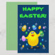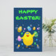 Niedliches Küken und bunte Ostereier, Cartoon-Abbildung