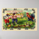 Dieses Vintage Osterposter zeigt den Osterhase, einen Hahn und kleine Küken, die am Ostertag Baseball spielen.
