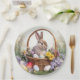 Osterhasen in einem Korb mit Blume und Ostereiern.