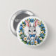 Ein süsser Osterhase-Button-Anstecker, entworfen mit einem blauen und weißen Blumenkranz