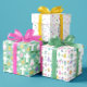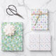 Ein farbenfrohes Set aus drei Oster-Verpackungspapierbögen mit passenden Mustern in hellen Farben für Ihre christliche Osterfeier. Weiße Osterhasen und gelbe Küken liegen unter weißen Kreuzen im Gras zwischen vielen Ostereiern. Weitere Eier, Kreuze und Hasen mit Tulpen. Und ein passender Punkt-Verpackungspapierbogen.