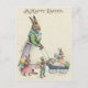 Dieser Frühling schicken jemand einen Ostern-Gruß! Dieser Vintage Druck stellt einen Osterhasen mit ihren Häschenkindern dar. Die Kinder, die farbige Eier tragen.