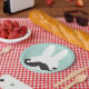 Feiern Sie Ostern mit diesem Spaßpapier-Teller, der ein Häschen kennzeichnet, das einen Schnurrbart trägt.